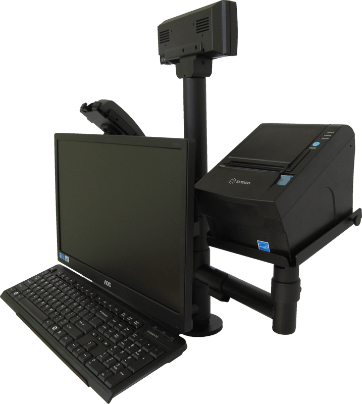 Le migliori soluzione per collocare monitor touch, stampanti, scanner, display, tablet, e sistemi per pagamento pos nei punti cassa.